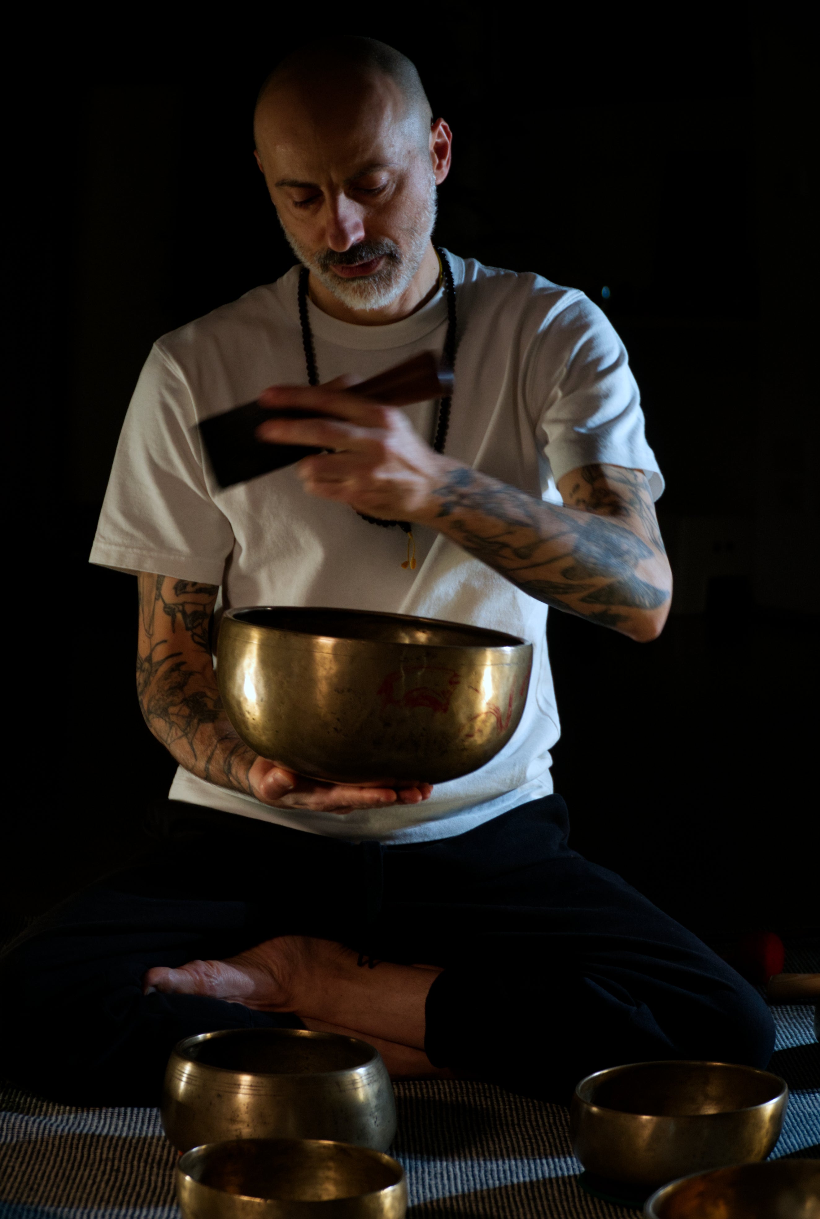 Nel passato, come nell’attualità, produce musica elettronica; la scoperta del Dharma e la formazione approfondita all’uso delle campane tibetane gli permettono di spostare il focus della passione musicale anche a favore della ricerca e dell’applicazione di tecniche olistiche che favoriscono il benessere dell’individuo.